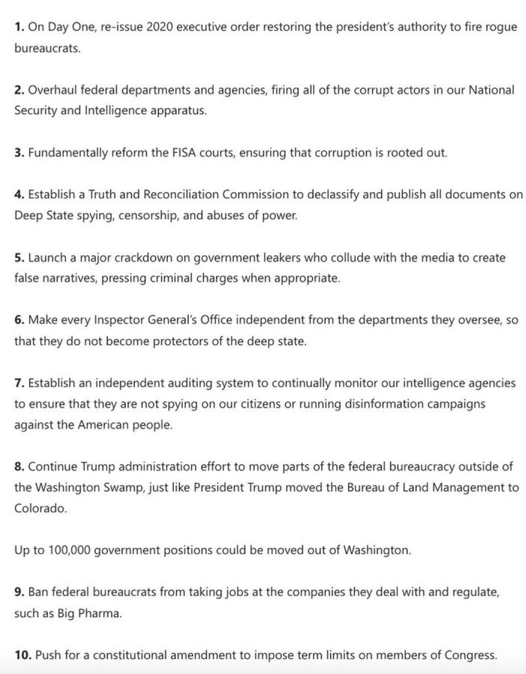 Trump has signaled that he is out for revenge in his second term and vows to "root out" what he called "the threat from within." Trump has told his supporters that he will direct the Justice Department to investigate "every Marxist prosecutor in America." Trump is much more vindictive than last time, though his talk of dismantling the Deep State comes across as more rhetorical, despite his ten-point plan. Certainly, Trump will try to use the presidency to settle personal scores. However, he has no clear plan or strategy to carry this out, which is not as simple as these bullet points. Trump still lacks a real grasp on the nature of power and is unmatched by his adversaries. Trump is too old thus invested in the old way of doing things, and emotionally seeks out sycophants who kiss his ass. I am skeptical of him putting together the right team that has what it takes.