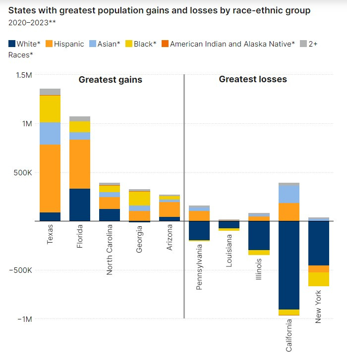 California is losing people overall, it is just that Whites are the most affected by the exodus. This is primarily due to Whites being more able to relocate with remote work, and that young White families are disproportionately leaving. Whites also have an older population and many elderly people died of Covid. While the Whites leaving are disproportionately working and middle class, there is also a modest exodus among affluent Whites.