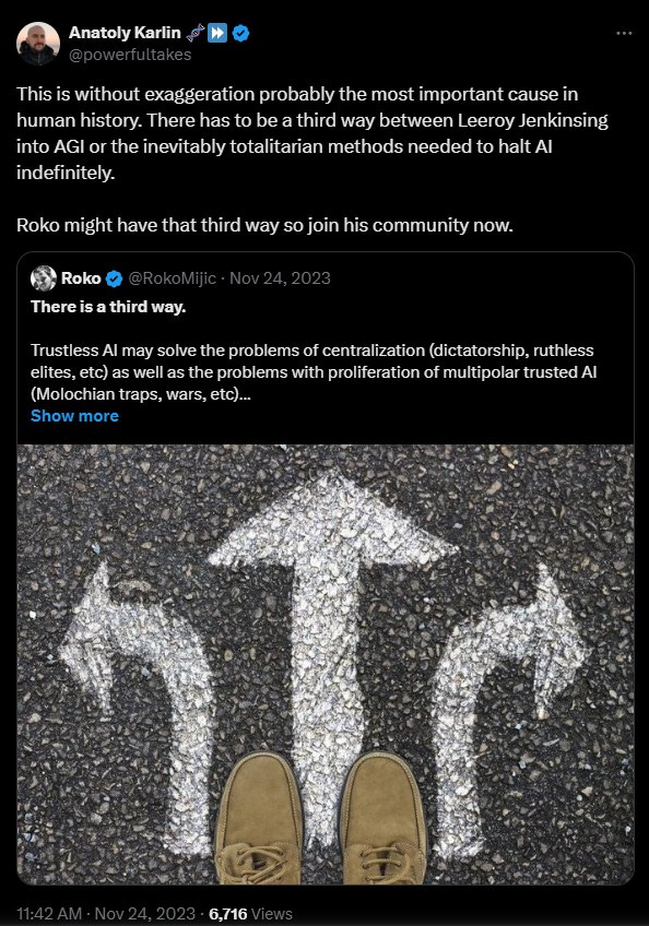While crypto has the potential to decentralize the economy, there is also concern it could be a path to a digital dollar. I am skeptical that crypto currencies will replace and weaken centralized governments, except perhaps in deindustrialized Third World nations, especially Africa. The big question is whether decentralized smart contract cryptos like Worldcoin are a net benefit or not in terms of AI risk. If not, the possibilities of a more decentralized economy and society are bleak.