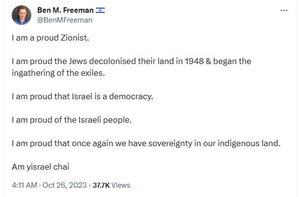 Both sides are desperate to demonstrate how woke they are, and not just in the West. For instance, Hamas’s leader compared Gazans to George Floyd, and there was an Israeli war propaganda campaign featuring Black Jews. Plus a Haaretz article, Dear BLM Activists, We Israelis Also Can’t Breath, mentioning that many Israelis living under the threat of Hamas terrorism are brown Jews. This is in response to pro-Palestinian takes like “It’s wild watching Zionists with blue eyes and blonde hair talk about how a country in the Middle East is their rightful homeland,” or pro-Palestinian leftists saying that Israelis should go back to Europe. A New York Magazine article by leftist, Eric Levitz, makes the case that Hamas are not leftwing anti-imperialist but rather rightwing ethno-nationalists, thus comparable to White Supremacists. While Levitz opposes Israel’s rightwing government, he emphasizes that Israelis are not colonizers like the French Pied Noirs in Algeria.