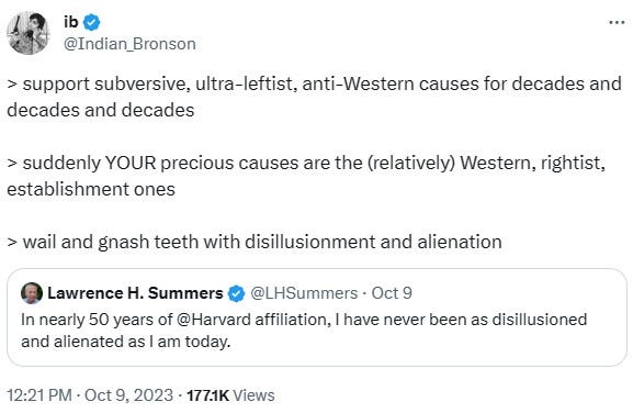 It is hard to have sympathy for outraged pro-Israel liberals, as they contributed to the kind of identity politics that led to this. For instance, former Treasury Secretary and former Harvard President, Larry Summers’, outrage over anti-Israel activism at Harvard. As president of Harvard, Summers presided over affirmative action and the rise in wokeness, but then suddenly now feels that woke politics have gone too far. Another example is UC Berkeley’s Law Dean, Erwin Chemerinsky, who is shocked and outraged at how anti-Semitic campus leftwing radicals are. Chemerinsky was previously caught admitting that he illegally discriminates against Whites in faculty hiring.