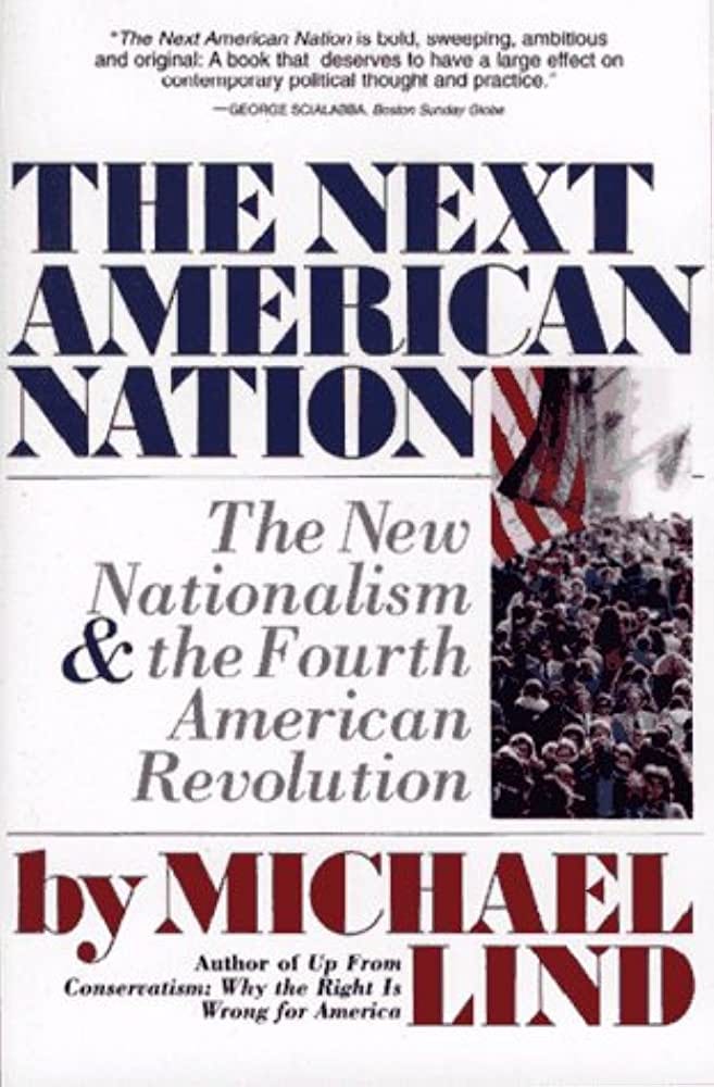 Writer and academic, Michael Lind, has a book, Next American Nation: The New Nationalism and the Fourth American Revolution, published in 1995. Lind advocates for a new Liberal Civic Nationalism for America, with calls for changing conceptions of America’s national identity, as far as what it means to be American. American History is made up of different republics, with the first being after independence, the 2nd after the Civil War, the 3rd post-WWII and post-civil rights. Lind calls for a Fourth Republic, or Fourth American Revolution. Lind believes in America as a proposition nation, founded upon liberalism, but does not overly idealize the Founding Fathers. Unlike other civic nationalists, Lind does not try to revise the originalism of America’s founding as compatible with modern liberalism, and views the Founders as White Supremacists. Lind is especially critical of Jefferson’s States’ Rights and anti-industrial agrarianism. Of American historical figures, Lind most admires Alexander Hamilton, Franklin D. Roosevelt, and Frederick Douglass, while is a staunch critic of both Joe Biden and Donald Trump, as well as Libertarianism.