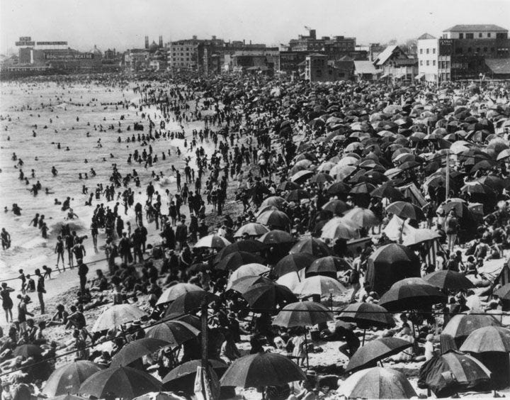 Historic photos of beaches in LA show people packed in like sardines, despite the region having only a fraction of today’s population. This is because people spend more time indoors watching TV or online. America also has less of a leisure culture than Europe, such as the lack of guaranteed paid vacation. One rare upside to the lockdown, is that it broke America’s toxic work culture and exposed people to the value of leisure.