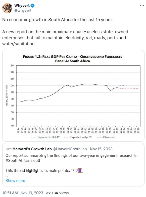 South Africa’s problems stem from trying to create a Western style nation-state that is also urbanized and a liberal democracy, out of many African tribes. Leftists are actually correct that the British Empire screwed things up by not respecting ethnic tribal boundaries, but unintentionally end up making an ethnonationalist argument. While I don’t think Apartheid was sustainable, South Africa would be better off carved up into smaller nations or under a decentralized confederacy of semi-autonomous regions.