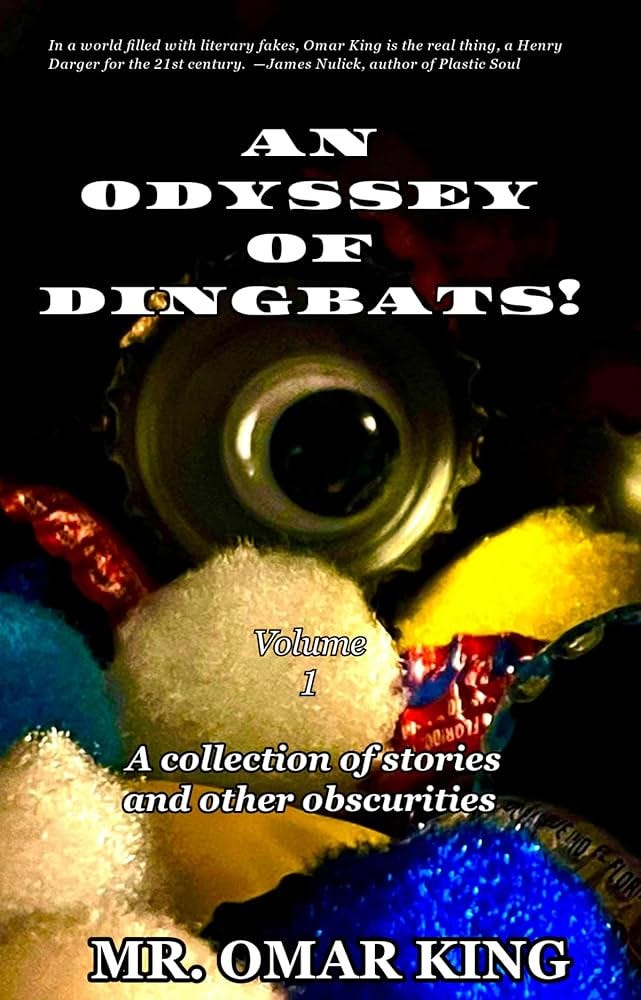 However, I would be doing Omar a grave disservice if I said An Odyssey Of Dingbats! was simply just shocking sexual humor, though it is a very funny book, and Omar has a unique sense of humor. When Omar read the story of the aging starlet, Barbie, he empathetically encapsulated her deep emotional pain and vulnerability, and the euphoria, love, and temporary regaining of her lost youth she experienced when a group of young hipsters danced with her at a bar. Omar’s surreal artwork is featured throughout the book, which captures the emotions and vibes of the book.