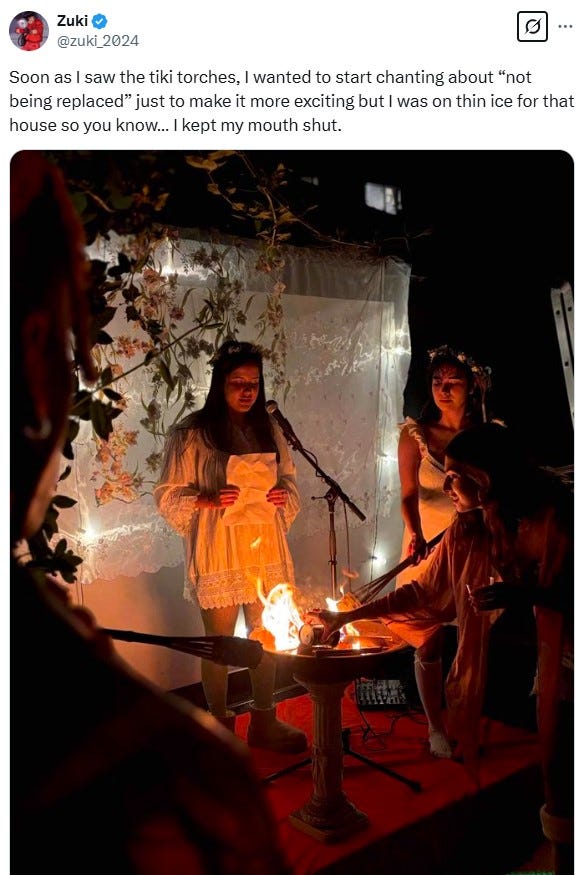 The crowd at the party was diverse, including ethnically, with attendees from all walks of life. For instance, I noticed hipsters, people in the entertainment industry, nonbinary people, Dark Enlightenment/Yarvin adjacent types, and a Groyper or two. I also got to meet some of my Twitter mutuals. Ironically, in an era of intense political polarization, there is this vibe shift that is more open and fluid, at least in the cultural sphere. While it is easy for outsiders to hate the normie, Gabby Sones’s talk captures a certain vibe shift where a lot of formerly disaffected people are embracing being normies because normies are much more content. Regardless, a scene based on outsider art is attracting a degree of social status and cultural clout.
