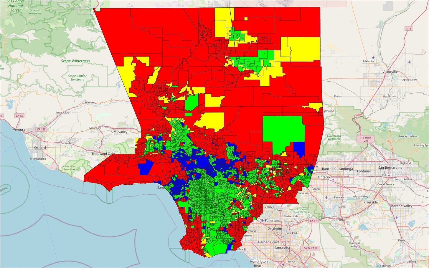 Blue = Yes on prop 15 and no on prop 19