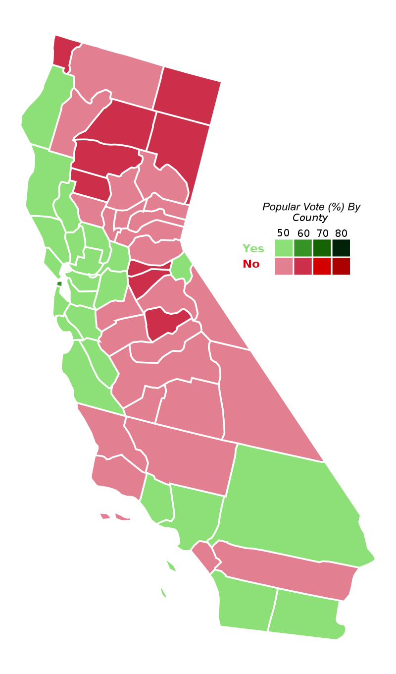 What is notable about the votes is that the breakdown in votes was based more around class rather than partisan politics. For instance there was opposition from much of the democratic affluent coastal suburban districts, in Southern California and the Silicon Valley, as well as Republicans in both suburban and rural areas. On the other hand there was Democratic support from the urban cores of San Francisco and the East Bay, and in some poorer districts, and there was Republican support in Orange County and some of the rural parts of Northern California.